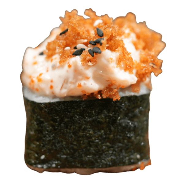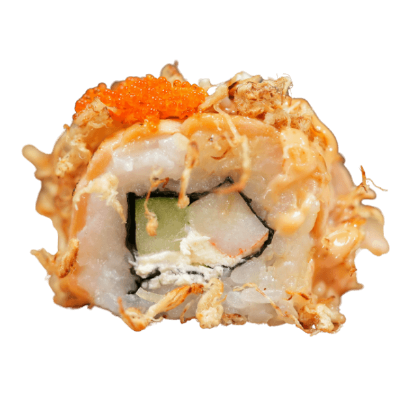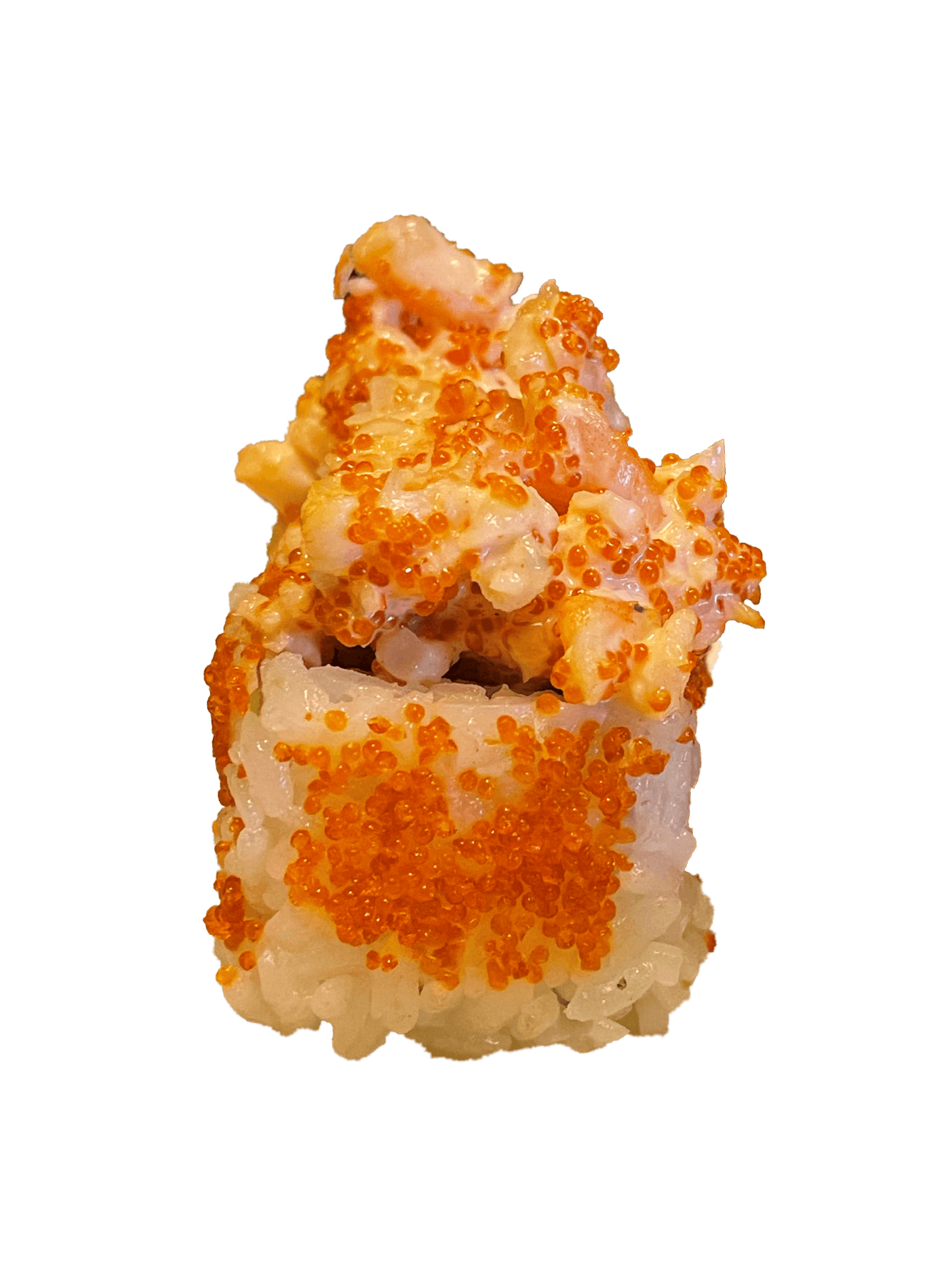 Ebi tartar, avocado, cucumber, spicy sauce, red tobiko.