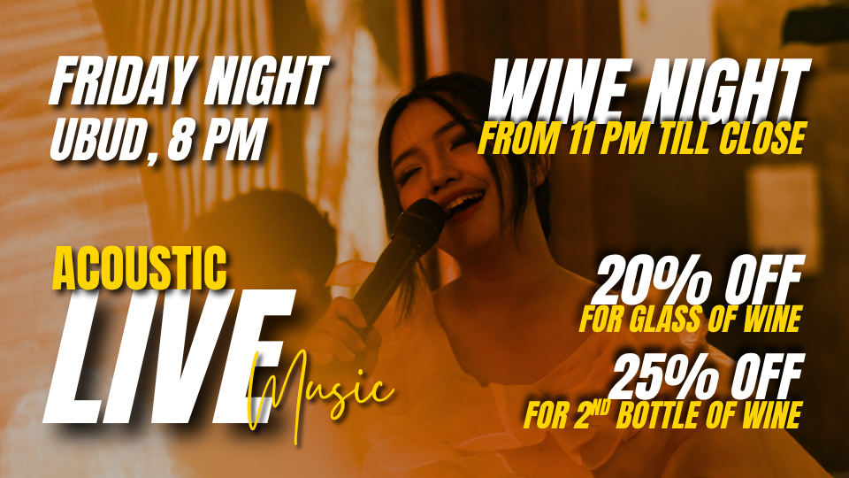 Join us at Eden Hookah Club Ubud for a night filled with live acoustic music, good vibes, and exclusive wine discounts — every Friday from 8 PM till late.