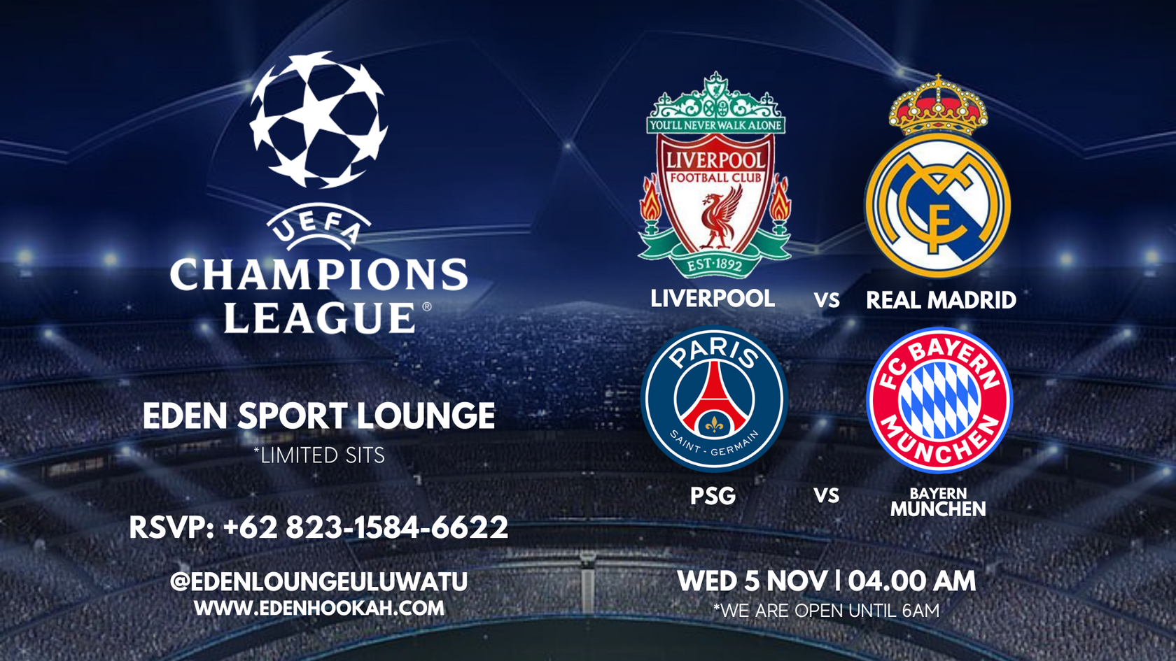 Watch the action LIVE at Eden Sport Lounge — available at both Seminyak and Uluwatu locations.