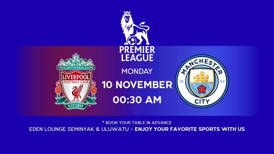 The ultimate clash is coming! Watch Liverpool take on Manchester City live at Eden Sport Lounge in Seminyak and Uluwatu this Monday, 10 November at 00:30 AM.